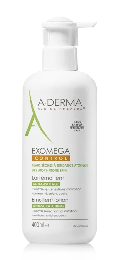 A-Derma Exomega mlijeko namijenjeno je osobama s atopijskim dermatitisom. Sadrži ekstrakt Rhealba zobi koja ima jedinstveno protuupalno djelovanje - smanjuje upalni podražaj, ublažava iritaciju i suhoću kože, inhibira adheziju Staphylococcus aureus, te smanjuje primjenu lokalnih kortikosteroida.