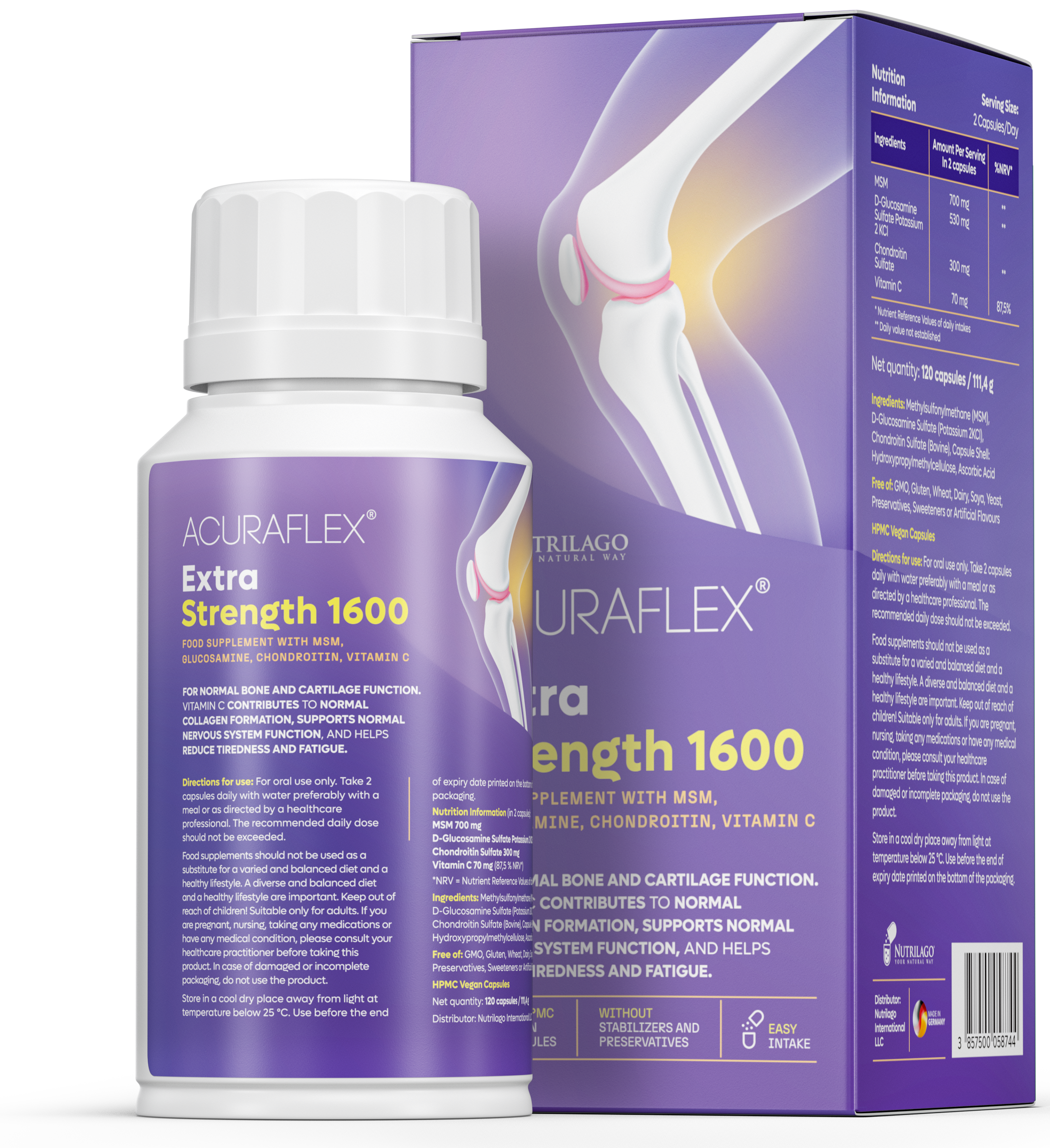 Acuraflex Extra Strenght 1600 svoje djelovanje temelji na sinergiji moćnih sastojaka poput glukozamina, kondroitin sulfata i MSM-a čiji učinak