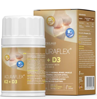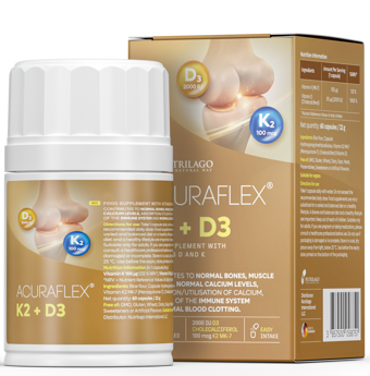 Acuraflex K2D3 prirodan je i kvalitetan dodatak prehrani koji ujedinjuje snagu vitamina D i K u kapsulama prikladnima za vegetarijance i vegane.