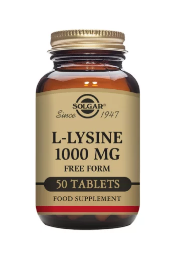 Solgar L-lizin 1000 mg je dodatak prehrani koji sadrži aminokiselinu lizin u slobodnom obliku hidroklorida što omogućava optimalnu apsorpciju i asimilaciju u organizam. Naš organizam ne može sam sintetizirati lizin nego ga trebamo uzimati u obliku dodataka prehrani. Lizin ima sljedeće djelovanje: