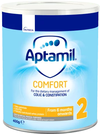 Aptamil Comfort 2 posebno je osmišljena hrana koja odgovara osjetljivom probavnom sustavu beba starosti od 6-12 mjeseci. Pomno osmišljena hrana djetetu bi trebala osigurati bolju i zdraviju probavu te tako spriječiti neugodne grčeve i neželjeni plač.