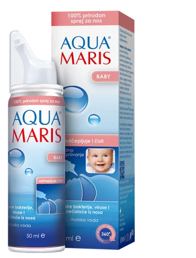 Aqua Maris Baby sprej za nos s kontinuiranim mlazom koristi se za ispiranje sekreta, čestica prašine, bakterija, virusa i alergena iz bebinog nosa. Morska voda bogata mineralima i oligoelementima, blagotvorno djeluje na sluznicu nosa, potpomažući prirodne mehanizme njezina čišćenja.