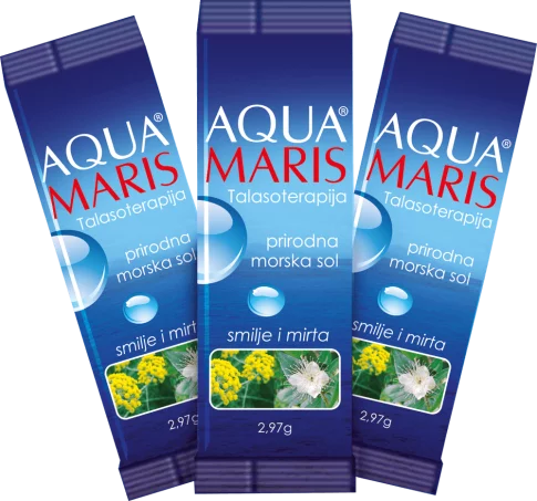 Aqua Maris vrećice s morskom soli obogaćene su eteričnim uljima bilja Mediterana (smilja i mirte) koji sinergistički djeluju protuupalno i antiseptički. Namijenjene su svakodnevnoj higijeni za zdravlje nosa i sinusa.