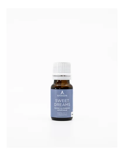 Aromara SWEET DREAMS mješavina eteričnih ulja 100% je prirodni blend za opuštanje i smirenje. Kombinacija eteričnih ulja njemačke kamilice i lavandina iz biološkog uzgoja.