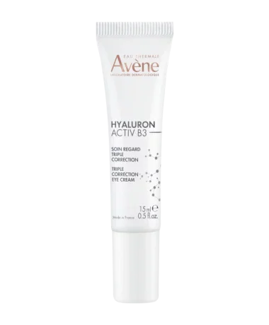 S godinama koža se mijenja. Stanice stare i koža funkcionira usporeno. Dermatološki laboratoriji Avène stvorili su Hyaluron Activ B3 trostruko korektivnu kremu za područje oko očiju koja sadrži dekstran sulfat, čistu hijaluronsku kiselinu (visoke i niske molekularne težine) i niacinamid (6%) kako bi djelovali na uzrok starenja i produžili život stanica.