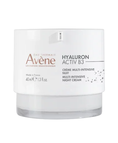 Avene Hyaluron Activ B3 noćna krema intezivna je obnavljajuća noćna njega koja sadrži retinal, čistu hijaluronsku kiselinu i niacinamid koji djeluju na uzrok starenja kože. Koža je čvršća, bore su smanjene.
