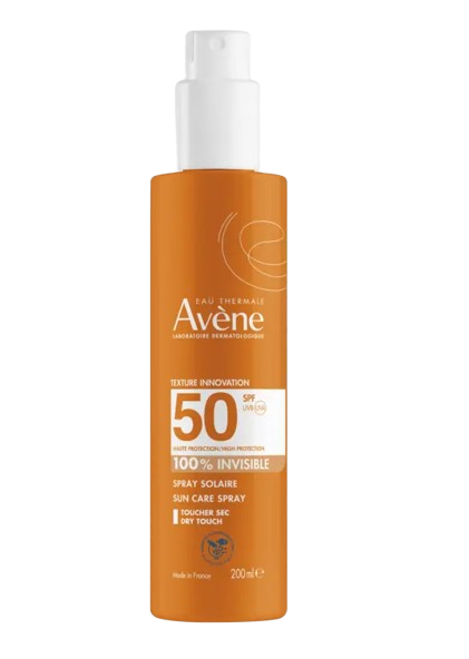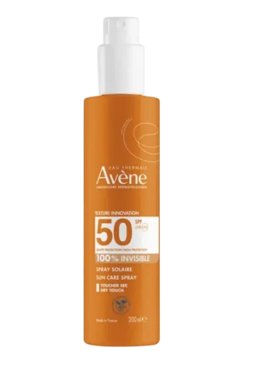 Avene Sun sprej SPF50 namijenjen je koži preosjetljivoj na sunce sklonoj opeklinama i koži izloženoj intenzivnom suncu. Pruža vrlo visoku zaštitu od širokog spektra dugih i kratkih UVA - UVB zraka. Sadrži snažan antioksidans. Vodootporno. Ne ostavlja bijele tragove na koži. Fotostabilno. Bez silikona. Bez parabena.