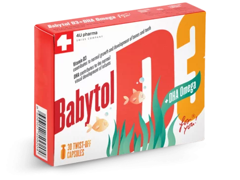 Babytol D3 + DHA Omega kapsule dodatak su prehrani koji pridonosi pravilnom razvoju mozga, kognitivnih i mentalnih funkcija te normalnom razvoju vida, oštrine vida i funkcije oka.