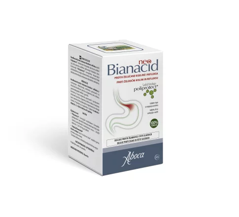 NEOBIANACID - Inovativni medicinski proizvod, klase IIa, koji se temelji na prirodnim molekularnim kompleksima s jedinstvenim učinkom zaštite sluznice želuca i jednjaka. Sadrži Poliprotect, molekularni kompleks koji zahvaljujući mukoadhezivnim svojstvima reproducira zaštitnu aktivnost fiziološke sluzi. U obliku tableta koje se otapaju u ustima.