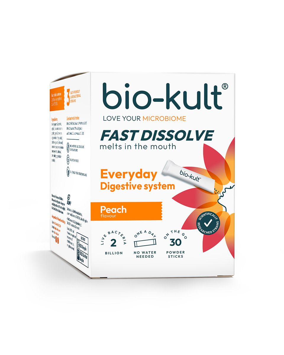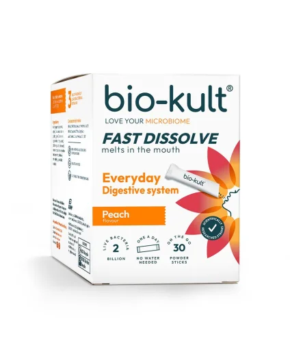 Bio-Kult Fast Dissolve Everyday je dodatak prehrani s živim kulturama mikroorganizama. Formuliran kao prašak koji se otapa direktno u ustima. Odličnog okusa breskve, ne sadrži umjetna bojila i arome, bez glutena. Pogodan za vegetarijance.