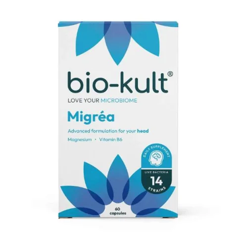 Bio-Kult Migrea kapsule dodatak su prehrani s 14 sojeva živih kultura mikroorganizama, magnezijem i vitaminom B6.