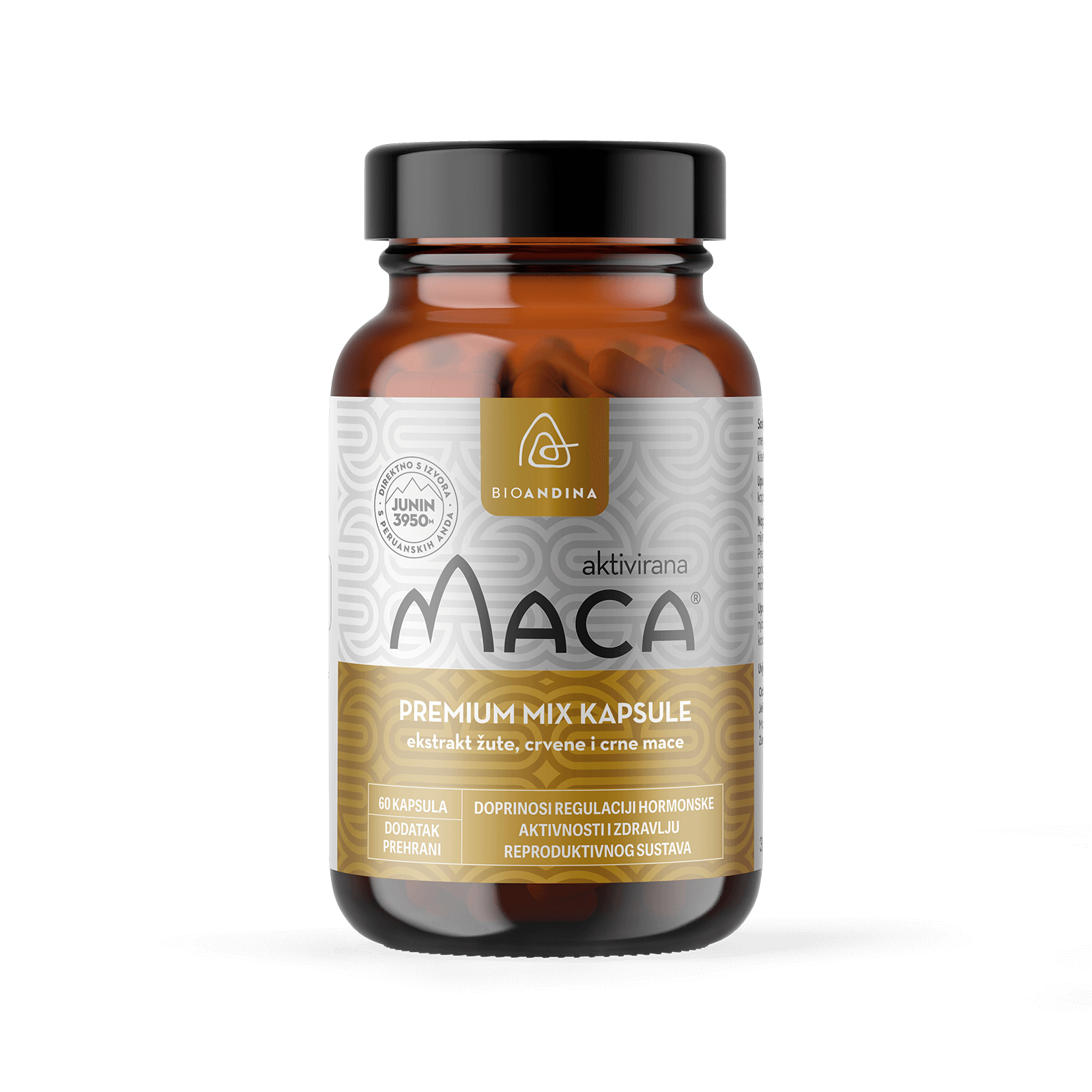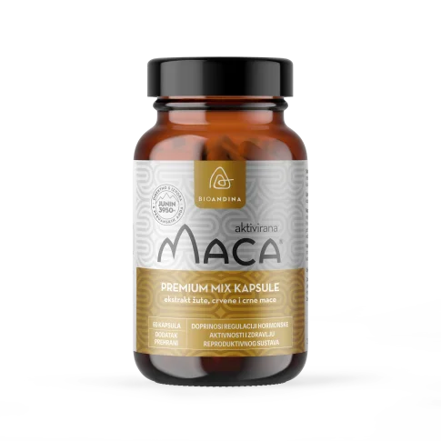Kod Bioandina ekstrakta MIX (žute, crvene i crne) Mace aktivirani su sekundarni metaboliti (macamidi i macaeni) koji su jedinstveni za biljku macu. Znanstvena istraživanja pokazala su da aktivacija glavnih bioaktivnih macamida zapravo proizlazi iz biokemijske reakcije koja se događa tijekom tradicionalnog sušenja i zagrijavanja. Zato se naziva aktivirana Maca. Premium MIX Maca kapsule doprinose regulaciji hormonske aktivnosti i zdravlju reproduktivnog sustava.