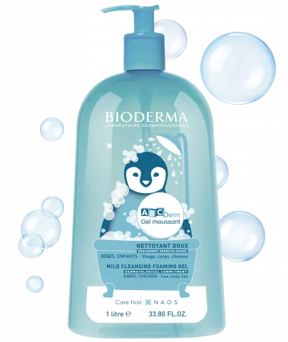 Bioderma ABCDerm pjenušavi gel blago je sredstvo za čišćenje bez sapuna, koji njeguje kožu novorođenčadi.