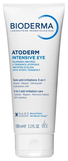 Inovativna 3-u-1 krema Atoderm Intensive Eye bori se protiv simptoma iritacije kapaka: umiruje, obnavlja i uklanja šminku. Nanesite izravno na kapke ili upotrijebite vatu. Dobra podloga za šminku. Bez mirisa. Prikladno za osobe koje nose kontaktne leće.