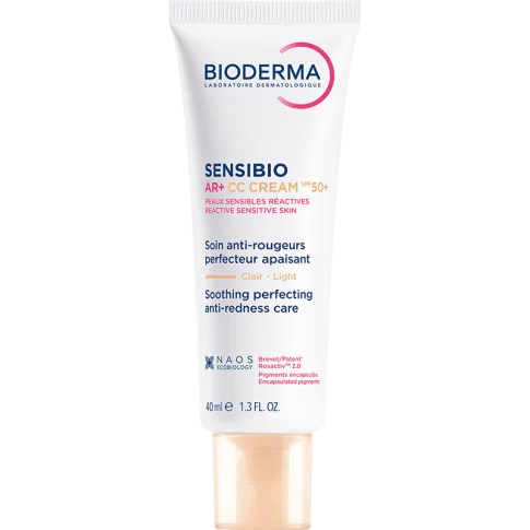 Bioderma Sensibio AR+ CC SPF50+ je tonirana dnevna krema za reaktivnu i osjetljivu kožu sklonu rozaceji. Zahvaljujući patentiranoj Rosactiv™ 2.0 tehnologiji i DAF™ kompleksu, učinkovito umiruje neugodne senzacije, smanjuje crvenilo i vidljive krvne žile te jača kožnu barijeru.