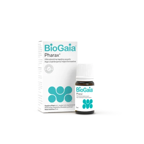 BioGaia Pharax je dodatak prehrani namijenjen podršci mikrobioma usne šupljine i grla. Sadrži jedinstvenu kombinaciju sojeva: Limosilactobacillus reuteri ATCC PTA 5290 izoliran iz usne šupljine i Limosilactobacillus reuteri DSM 17938 (Protectis) izoliran iz majčinog mlijeka. Opsežno je klinički istražen, testiran i ima dokazanu sigurnost i učinkovitost.