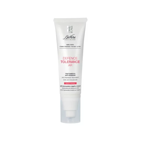 BioNike DEFENCE TOLERANCE AR Anti-redness treatment - krema za njegu osjetljive kože sklone privremenom crvenilu lagana je njega (emulzija) dizajnirana za specifične potrebe njege kože s prolaznim i privremenim crvenilom (vrućina obraza, crvenilo nastalo pod utjecajem okoliša, hladnoće, ljute i začinjene hrane, alkoholnih pića i sl.).