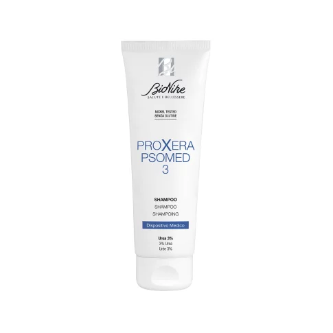 BioNike PROXERA PSOMED 3 šampon za vlasište sa psorijazom s 3% ureje medicinski je proizvod koji se koristi za prevenciju hiperkeratoza vlasišta. Idealan je kao adjuvantni topikalni (lokalni) tretman za pranje vlasišta sklonog psorijazi. Nježno pere i respektira integritet kože vlasišta, prevenira nastanak psorijatičnih plakova i hiperkeratoza vlasišta.