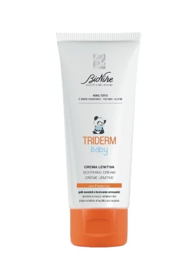 BioNike TRIDERM BABY hidratantna krema za njegu osjetljive dječje kože umiruje nadražaj, ovlažuje i osnažuje zaštitnu barijeru nježne kože dojenčadi i male djece. U toj dobi dječja koža ne proizvodi dovoljno vlastitih lipida, stoga je važna zaštita od nadražaja i crvenila.