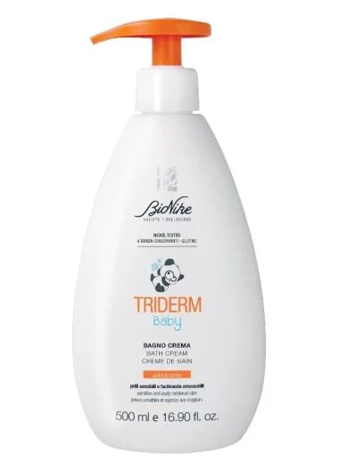 BioNike TRIDERM BABY nježna krema za pranje i kupanje razvija nježnu pjenu i pere osjetljivu kožu dojenčadi i djece. Izvrsno je podnošljiva (pH 6.0 - 6.5) i ne narušava zaštitnu barijeru dječje kože koja ne proizvodi dovoljno svojih vlastitih lipida. Nakon kupanja dječja koža je meka i nježna. Krema je prikladna i u slučaju suhe i nadražene kože.