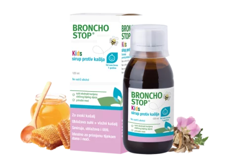 Bronchostop Kids sirup je medicinski proizvod. Pouzdano i brzo ublažava svaki kašalj povezan s prehladom, bilo da se radi o suhom ili vlažnom (produktivnom) kašlju. Uz to pomaže u zaštiti sluznice usta i ždrijela u slučaju suhoće.