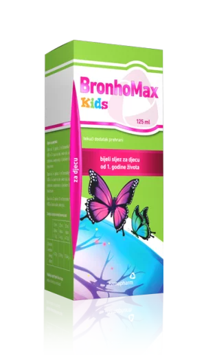 Bronhomax Kids sirup sadrži ekstrakt korijena bijelog sljeza i namijenjen je djeci od navršene 1. godine života. Ublažava kašalj te pomaže iskašljati nakupljenu sluz.