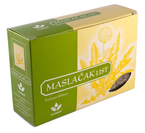 Suban Maslačak list stimulira lučenje tekućine iz tijela, lučenje žuči i regulira metabolizam; tonizira organizam. Sadrži gorku tvar taraxacin, triterpene, sterole, smole, trjeslovine i vitamin C. Dodaje se kurama u detoksikaciji organizma, potiče rad jetre i bubrega te izlučuje toksine.