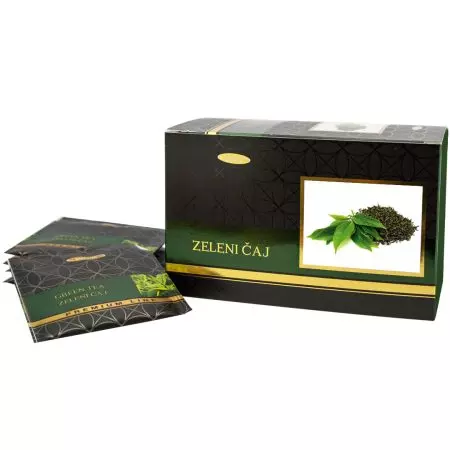 Zeleni čaj sadrži manje kofeina od ostalih vrsta čaja te je bogatiji antioksidansima. Polifenoli zelenog čaja imaju izražen antioksidativni učinak, a ovaj čaj povoljno djeluje i na ubrzanje vašeg metabolizma. Svjetlost negativno utječe na zeleni čaj zato ga čuvajte u metalnim posudama, bez izlaganja svjetlu.