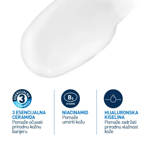 Krema za lice CeraVe zadržava vlažnost u koži i obnavlja njezin zaštitni sloj bez iritacija, začepljenih pora i osjećaja masnog sloja na koži.