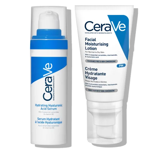 CeraVe Hidratantni protokol za njegu lica s hijaluronskom kiselinom kombinacija je CeraVe seruma s hijaluronom te hidratantne CeraVe PM kreme za lice.