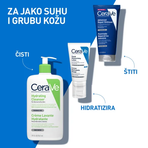 CeraVe Advanced obnavljajuća mast za obnovu suhe i grube kože trenutno štiti i umiruje suhu i grubu kožu te pomaže u obnovi kožne barijere.