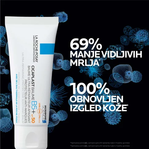 La Roche Posay Cicaplast B5 balzam SPF50+ kompletna je formula za zaštitu, smirenje i popravak funkcije kožne barijere, posebno ispitana na tetoviranoj koži kao i na onoj nadraženoj nakon postupaka (nakon eksfolijacije ili laserskog tretmana).