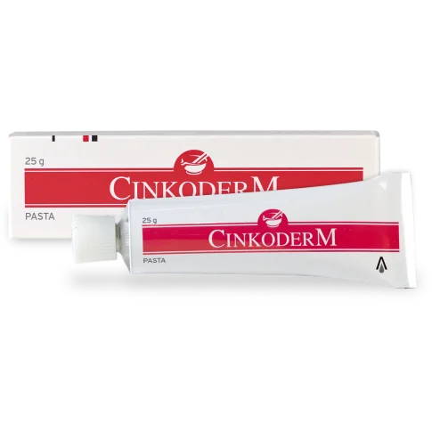 Cinkoderm pasta sadrži cinkov oksid koji ima adstringentno, zaštitno i blago antiseptičko djelovanje. Koristi se za njegu i zaštitu blago upaljene kože, osobito vlažnih dijelova koji su podložni upalnim promjenama. Posebno je pogodna za njegu i zaštitu pelenskog područja u slučaju pojave pelenskog osipa ili drugih ojedina na koži.