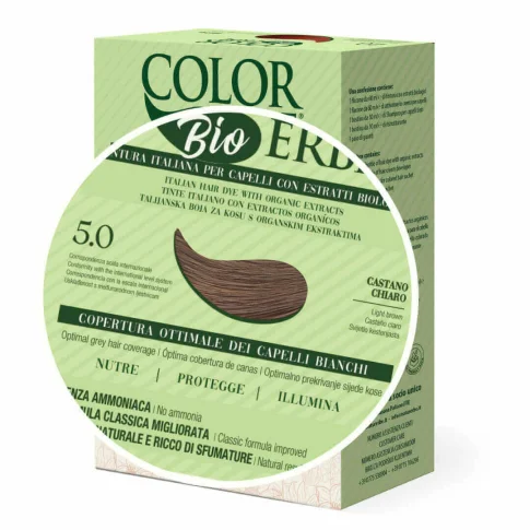 Color Erbe Bio boja za kosu bez amonijaka, temeljena na travarskoj tradiciji, s organskim ekstraktima cvjetova kamilice i nevena, pšeničnih klica, listova oraha i organskim uljem argana.