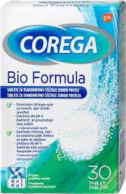 Corega Bio šumeće tablete učinkovito odstranjuju ostatke hrane i s teško dostupnih mjesta koje četka ne dohvaća. Corega tablete odstranjuju mrlje i očuvaju protezu čistom i svježom. Sprječavaju upale desni i čak nakon dugotrajnog korištenja one ne uništavaju materijal proteze.