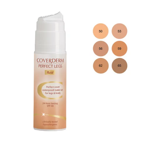 Coverderm Perfect Legs fluid je vodootporni make-up za prekrivanje svih nesavršenosti na nogama i tijelu poput proširenih vena, vidljivih kapilara, prištića, ožiljaka, strija, opekotina, tamnih mrlja.