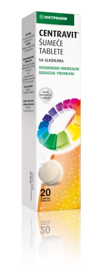 Centravit šumeće tablete sadrže kalcij, magnezij, vitamin C, kalij, niacin, vitamin E, pantotensku kiselinu, cink, željezo, vitamin B6, vitamin B2, vitamin B1, bakar, mangan, vitamin A, folnu kiselinu, biotin, jod, vitamin K, krom, molibden, selen, vitamin D i vitamin B12. Preporučuju se kod umora, iscrpljenosti, pada imuniteta, čestih viroza te stanja stresa.