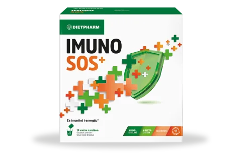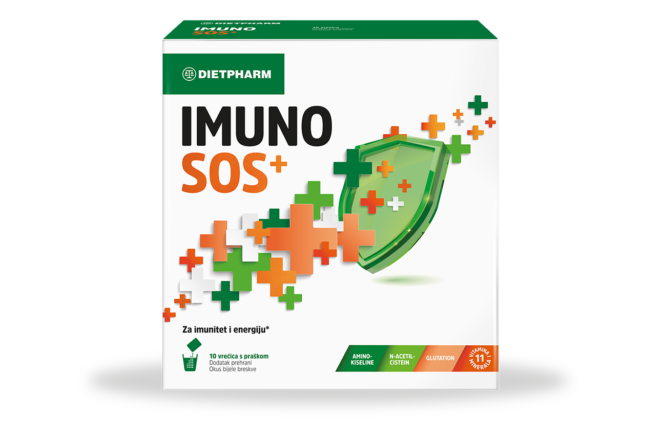 Imuno SOS⁺ prašak je dodatak prehrani za brzu “SOS” podršku organizmu, s jedinstvenom kombinacijom sastojaka za zdrav imunitet i smanjenje umora i iscrpljenosti. U praktičnom obliku praška koji se lako otapa, ugodnog okusa bijele breskve.