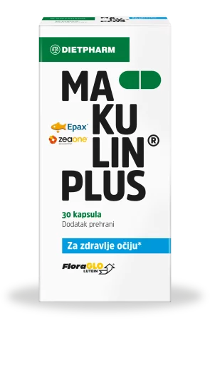 Dietpharm Makulin plus kapsule su dodatak prehrani za zaštitu vida. Sadrže masne kiseline omega 3 /DHA i EPA / iz ribljeg ulja, koje osim što štite stjenke krvnih žila oka, poboljšavaju protočnost krvi i sprječavaju stvaranje krvnih ugrušaka, a važne su i za očuvanje strukture mrežnjače oka. Lutein i zeaksantin su prirodni karotenoidi neophodni za oštrinu vida, a vitamin C i E te cink kao snažni antioksidansi dodatno zaštitno djeluju na vid.