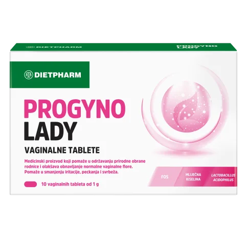 PROGYNO LADY je medicinski proizvod u obliku vaginalnih tableta koji pomaže u održavanju prirodne obrane rodnice i olakšava obnavljanje normalne vaginalne flore. Pomaže u smanjenju iritacije, peckanja i svrbeža.