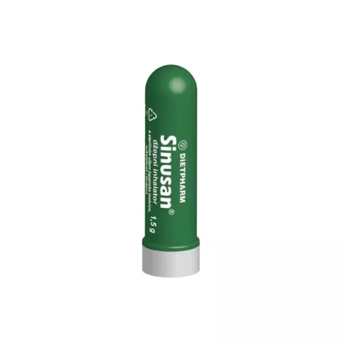 Dietpharm Sinusan inhalator džepni koristi se kod prehlade i otežanog disanja kroz nos te za prevenciju akutnih upala sinusa. Dietpharm Sinusan inhalator džepni u trenu oslobađa dišne putove. Sadrži djelomično dementolizirano eterično ulje japanske metvice, eterična ulja eukaliptusa i timijana, i kamfor.