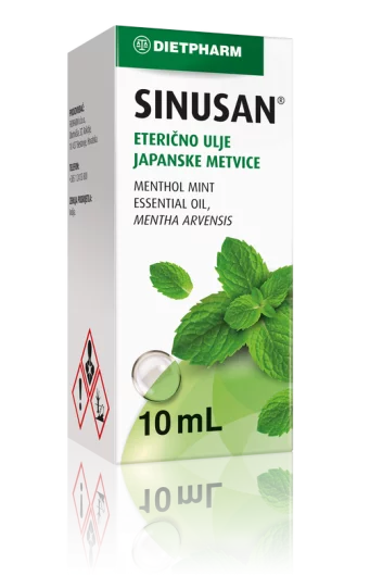 Dietpharm Sinusan ulje za inhalaciju koristi se kod prehlade i otežanog disanja kroz nos, za prevenciju akutnih upala sinusa. U trenu oslobađa dišne putove. Pomaže kod začepljenosti gornjih dišnih puteva, djeluje protiv prehlade, hunjavice i glavobolje. Sadrži djelomično dementolizirano eterično ulje japanske metvice, eterična ulja eukaliptusa i timijana i kamfor.