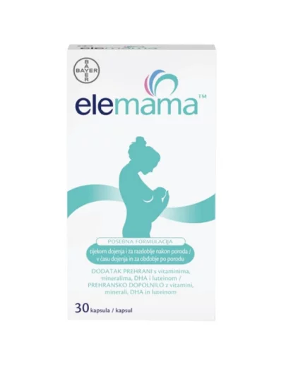 Elevit Elemama kapsule su dodatak prehrani s vitaminima i mineralima, a preporučuju se tijekom dojenja, odnosno nakon poroda. Sadrže vitamine B skupine, C, A, E, folnu kiselinu, Vitamin D,te minerale željezo, kalcij, cink, jod i selen.