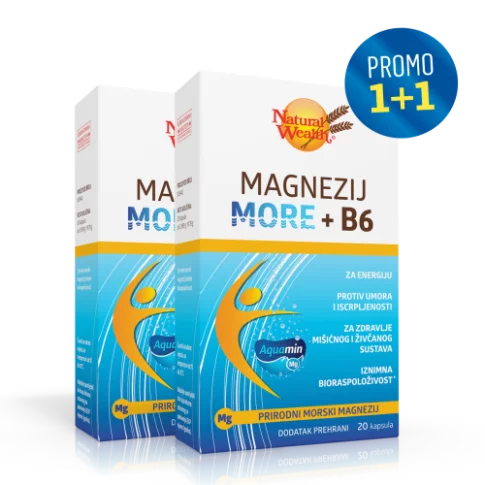 Natural Wealth Magnezij More + B6 je dodatak prehrani s prirodnim morskim magnezijem (Aquamin Mg) 300 mg te vitaminom B6.