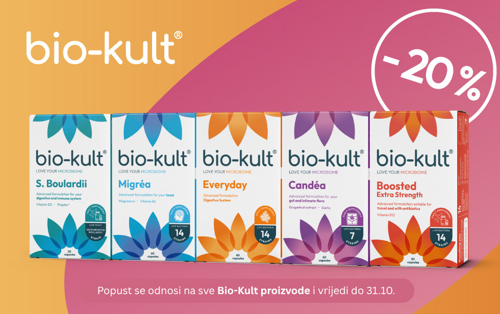 Ojačajte svoju probavu i imunitet uz Bio-Kult probiotike – sada uz 20% popusta! Bio-Kult formulacije s višestrukim sojevima dobrih bakterija pomažu u održavanju zdrave crijevne flore, podržavaju probavni sustav i jačaju otpornost organizma.