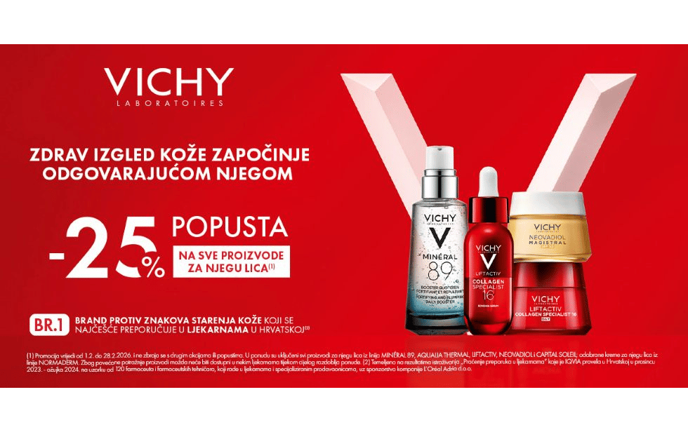 Otkrijte Vichy proizvode za njegu lica i uživajte u 25% popusta na kvalitetnu njegu koja revitalizira vašu kožu!