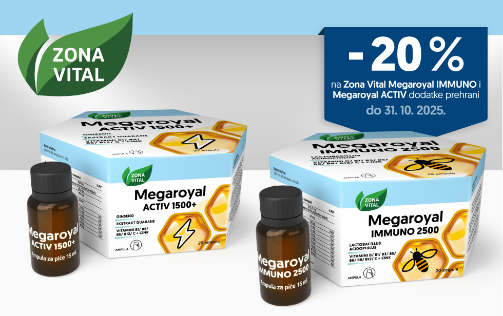 Iskoristi ovu akciju od 20% popusta i prirodnim putem ojačaj svoje tijelo – Zona Vital Megaroyal proizvodi dostupni su po sniženim cijenama do kraja listopada u webshopu Prima Farmacia!