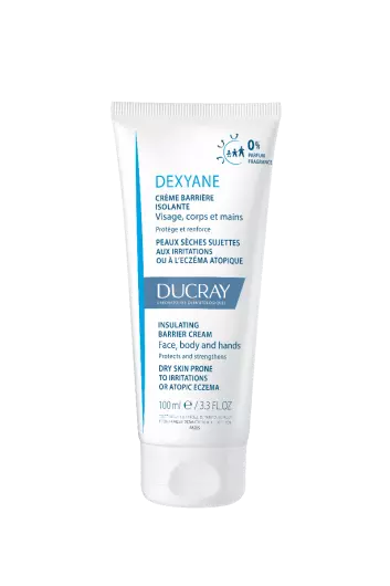 Ducray Dexyane izolirajuća barrier krema zaštitna je njega za kožu sklonu atopijskom dermatitisu ili iritacijama. Štiti i ojačava kožu. Za lice, tijelo i ruke. Za dojenčad stariju od 3 mjeseca, djecu i odrasle.