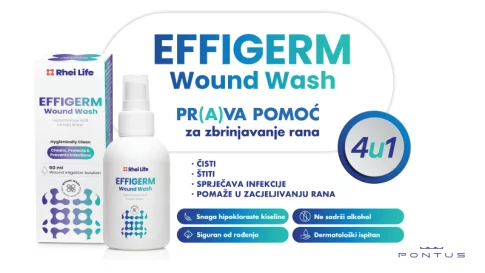 Effigerm Wound Wash Liquid - je otopina za čišćenje, ispiranje i vlaženje rana. Koristi se za tretiranje manjih ogrebotina, razderotina, iritacija, posjekotina i opeklina na koži te za primjenu na neoštećenoj koži - pomaže u sprječavanju stvaranja biofilma.