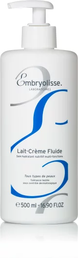 Embryolisse Lait-Crème Fluid je višenamjenski losion koji vam je uvijek na raspolaganju kako bi vam pružio neophodne hranjive sastojke za lice i tijelo u jednom jednostavnom i brzom pokretu. Embryolisse Lait-Crème Fluid je verzija poznate kreme Embryolisse Lait-Crème Concentré, ali laganije teksture. Sadrži iste hranjive i hidracijske aktivne sastojke prirodnog podrijetla: shea maslac, pčelinji vosak, aloe veru i proteine soje.